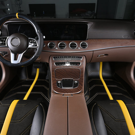 Custom Fit Design Stylish Nappa Leather Yellow Stripe Embroidery Car Floor Mat for Benz