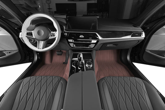 Custom Fit Non Slip and Protection Front and Rear Car Floor Mat with Nappa Leather Embroidered for BMW Telsa