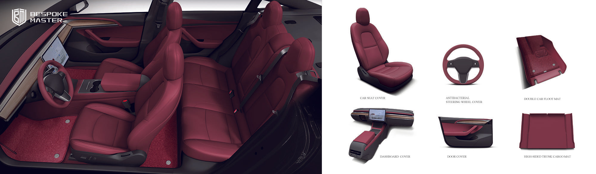 Easy Install Half Option Nappa Leather Custom Car Seat Covers for Tesla